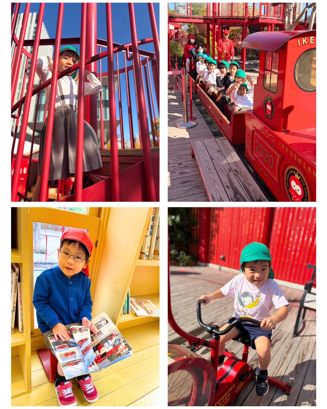 子どもたちが特に楽しみにしているのは、公園内を走るミニSL「IKE電」に乗ることです。また、砂場やクライミング遊具、ブランコや滑り台など、多様な遊具を自分のペースで楽しんでいます。遊びを通して、バランス感覚や運動能力、自信を育むことができます。
