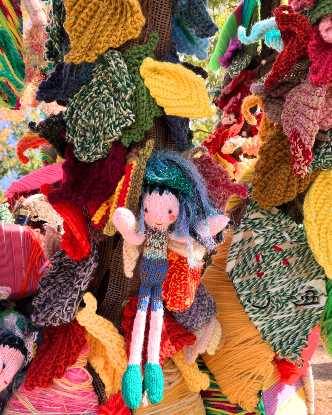 The children ran freely around the park, pointing out the different colours and patterns, and showing curiosity about the tree covered in knitted pieces. They observed, touched, and talked about what they saw, engaging their senses and naturally building vocabulary through real-world experiences.