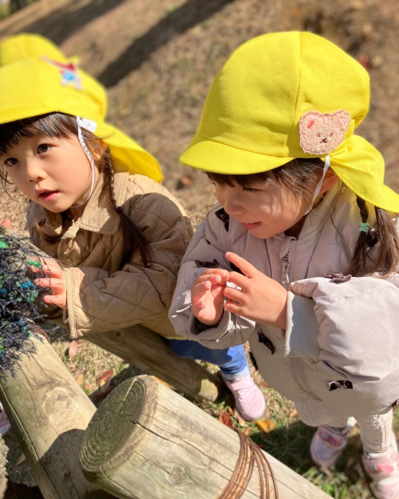 Recently, our Pumpkin class visited Ikesun Park and discovered a special community art project called the Amimono Tree. Although the project had already been completed and the children were too young to participate in the knitting themselves, they were captivated by the colourful display and enjoyed exploring the park.